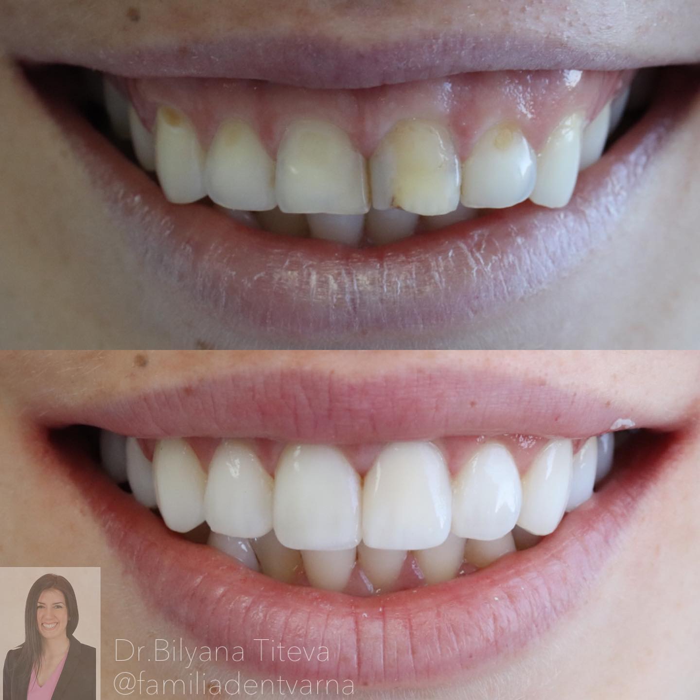 Стъпка по стъпка протоколи композитни фасети при мъртви преоцветни зъби при реален клиничен случай
