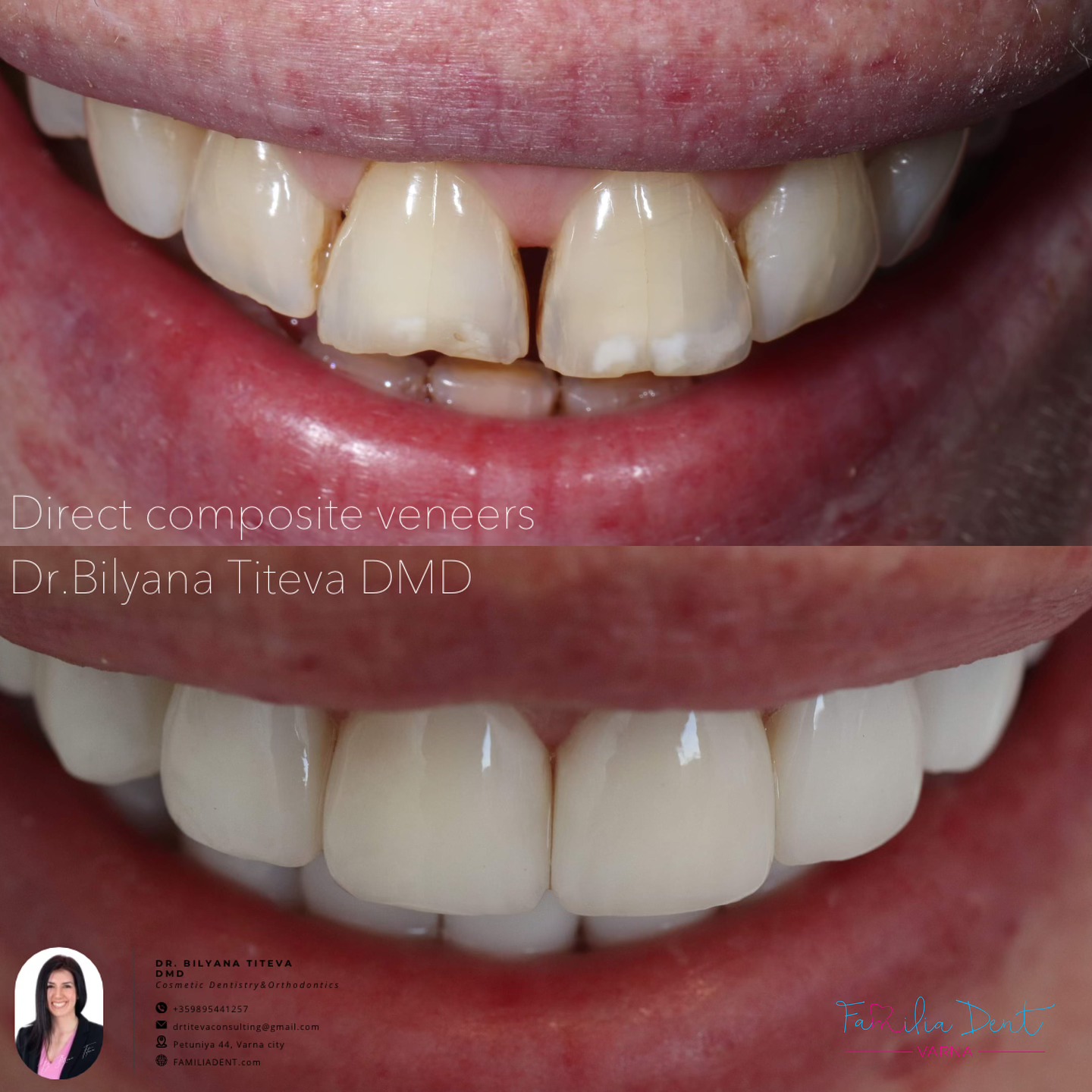 КОМПОЗИТНИ ФАСЕТИ при ГИНГИВАЛНА УСМИВКА, ДИСПЛАЗИЯ на ЕМАЙЛА и МЛЕЧНИ КАНИНИ