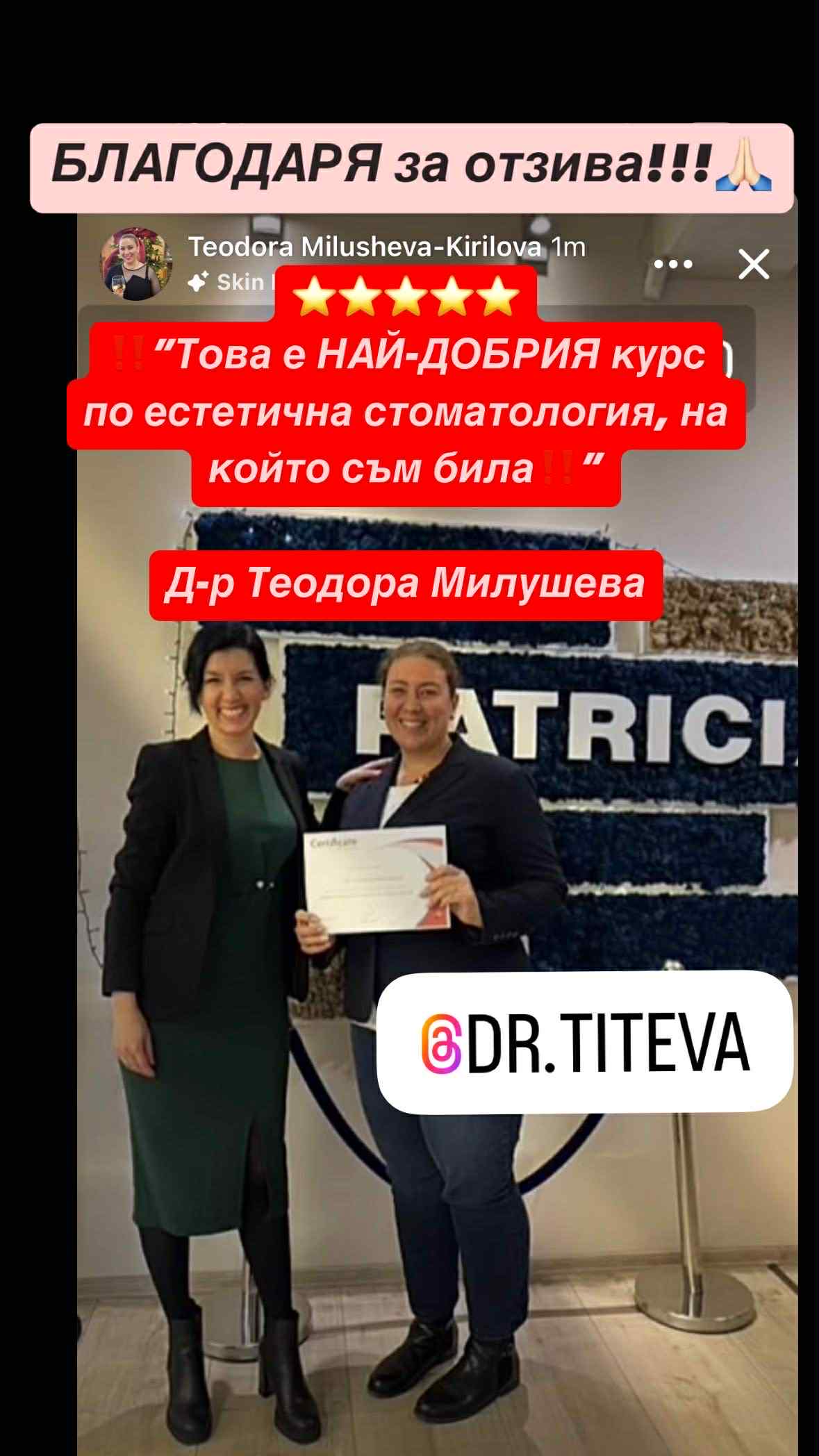 "Това е най-добрия курс по естетична стоматология, на който съм била"